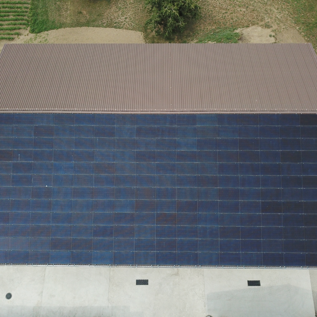 Auf Welleneternit montierte PV-Anlage. Baujahr: 2022