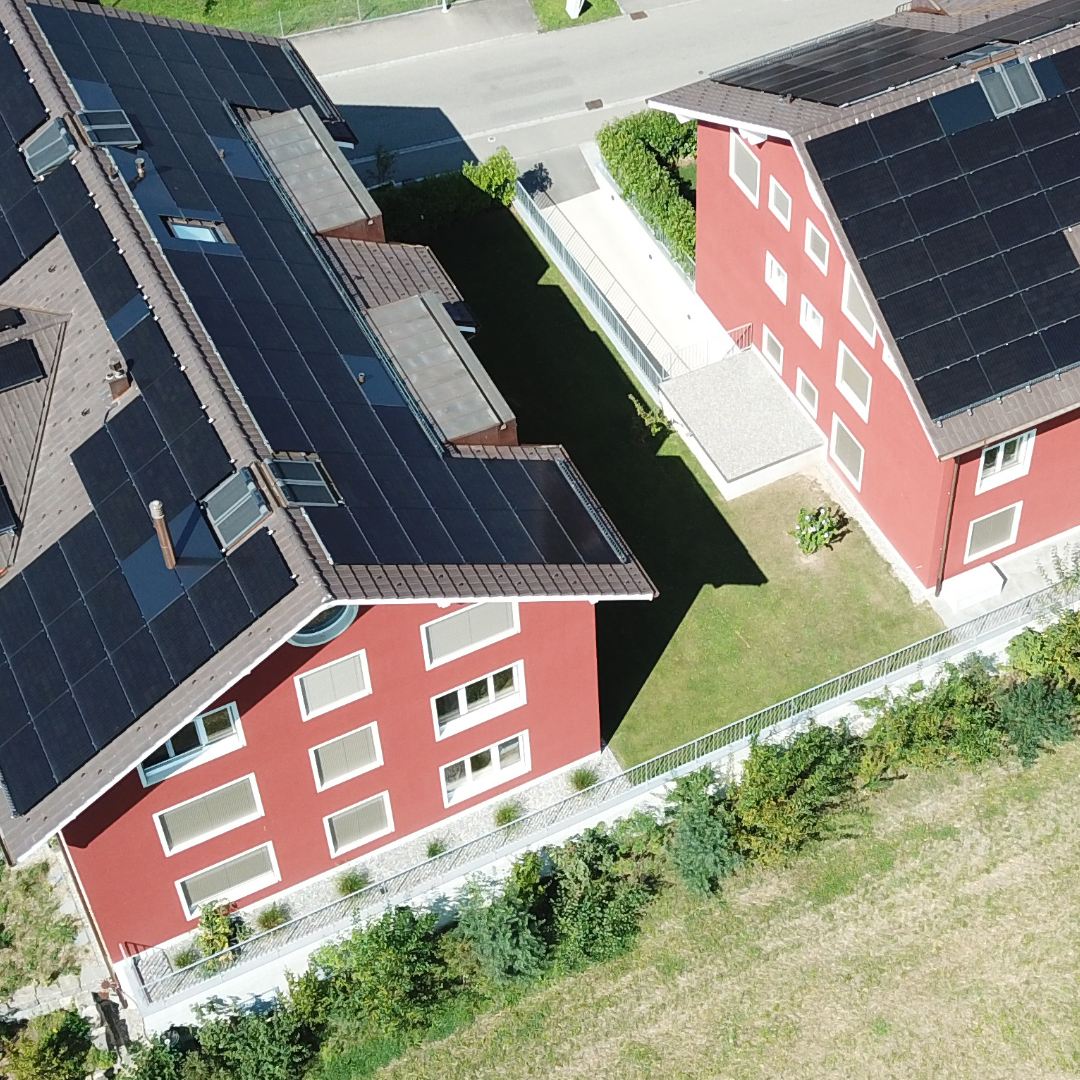 Aufdach PV-Anlage auf einem Mehrfamilienhaus in Toffen. Baujahr: 2022