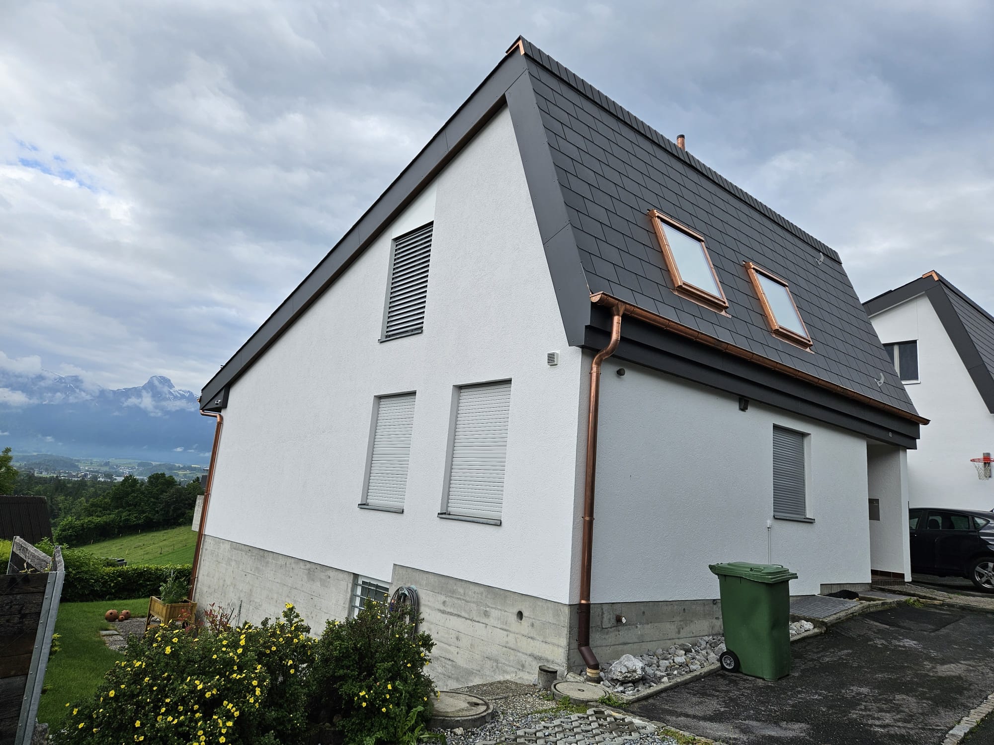 Dachsanierung mit Eternit Dachschiefer und integrierten Solarmodulen für Alpine Bedingungen. Baujahr: 2022